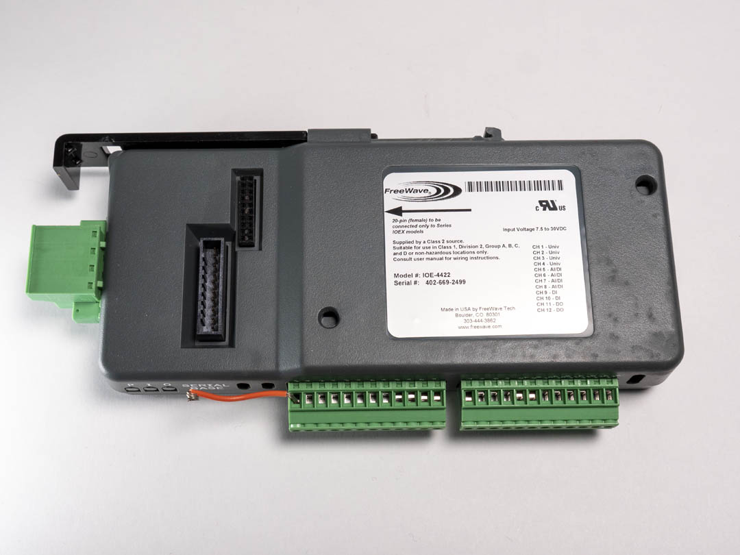 The FreeWave IOE‑4422 is a compact yet powerful I/O expansion module designed for industrial and remote‑automation systems. It adds 12 additional channels. These include 4 universal, 4 input‑only, and 2 isolated digital inputs. Plus, it has 2 isolated digital outputs. Certified for Class I Division 2 hazardous locations, it is built to operate in harsh environments. It supports both wired and wireless control architectures.