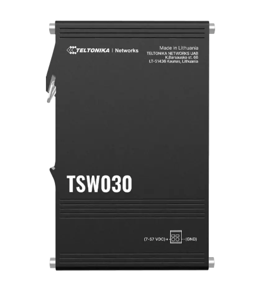 The Teltonika TSW030 is a cost‑efficient unmanaged industrial Ethernet switch built for demanding environments. It features eight 10/100 Mbps RJ45 ports, integrated DIN‑rail mounting, and consumes as little as 0.5 W when idle. With over 20 Gbps non‑blocking bandwidth and support for wide temperature ranges (−40 °C to +75 °C), the TSW030 ensures stable, reliable connectivity in factories, mobile equipment, and remote sites.